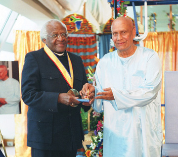 "Father Tutu, your illumined wisdom proclaims that separation is the greatest suffering and the root of conflict, whereas oneness is the greatest joy and the wellspring of peace. Your heart of faith, your life of humility toward God and man-which is nothing but oneness itself, your towering intellect surrendered to the service of God, and your eloquent voice of all-embracing love make you a shining harbinger of tomorrow's peace-flooded oneness-world."
