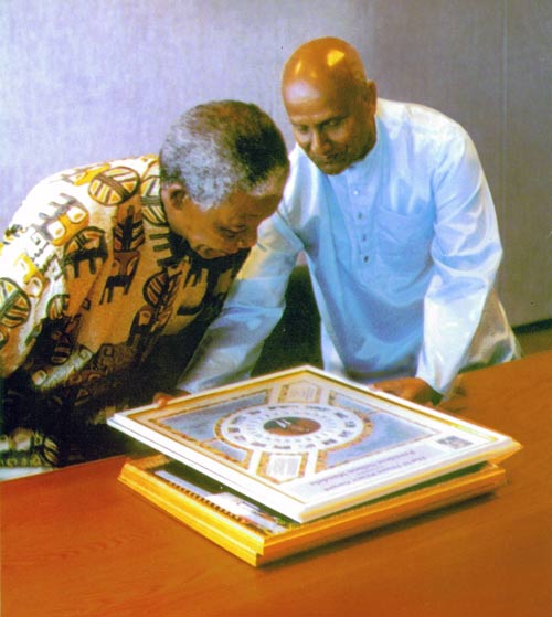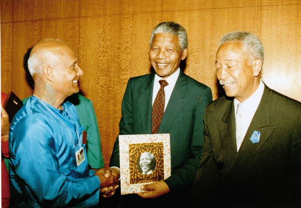 Sri Chinmoy met with President Nelson Mandela on several occasions, and the two became good friends. Sri Chinmoy frequently offered his appreciation and gratitude for the sacrifice and commitment of Nelson Mandela to the cause of justice, peace and reconciliation. President Nelson Mandela also found time in his very busy schedule to offer Sri Chinmoy his own encouragement.